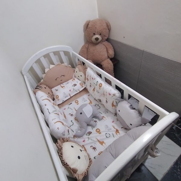 - tour de lit : 4 Animaux + Soleil + nuages + 2 coussins rectangulaires